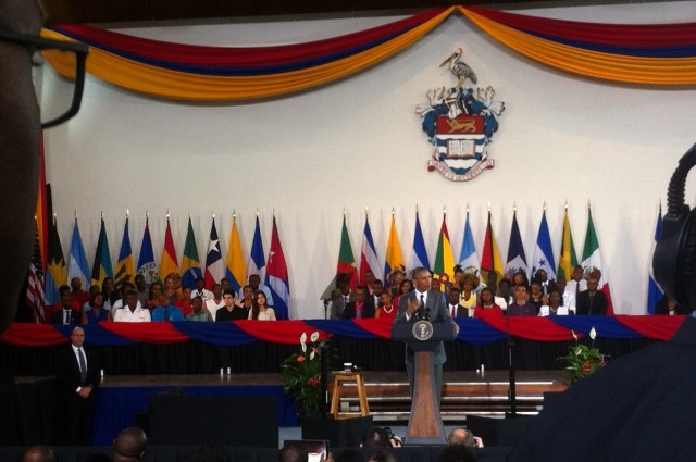President addresses Caribbean Youth Forum at University of the West IndiesAfter his summit meeting with Caribbean Leaders, he had an interactive Youth Forum with Caribbean Students at the Town Hall of the University of the West Indies. Politicians, other VIPs and sports stars such as Usain Bolt, Shelly Ann Fraser were also in attendance.